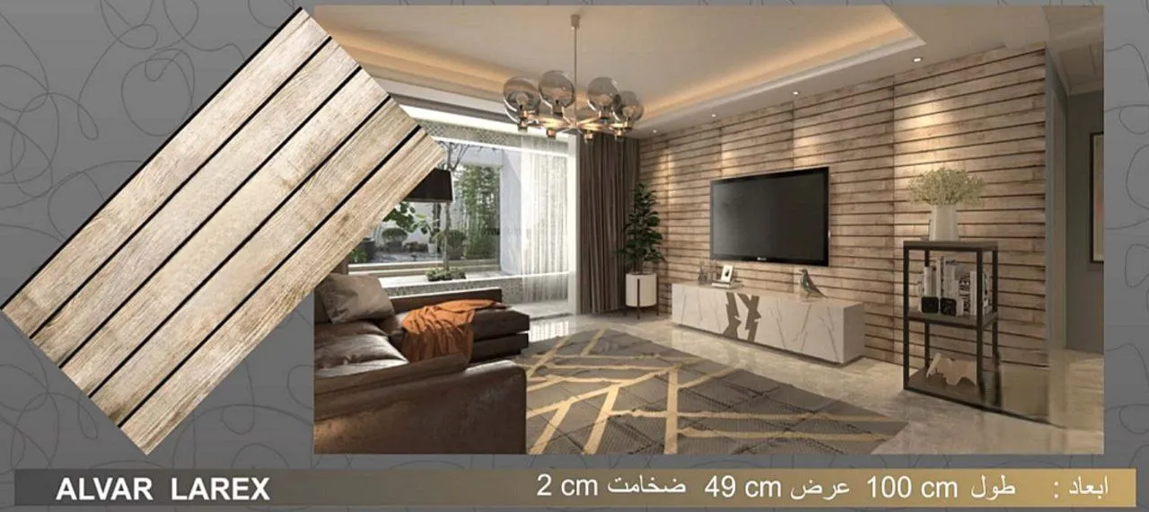 طرحهای متنوع و زیبا: شامل طرحهای چوب طبیعی، بتن، صخره، ترمووال، کاشی اسلیمی و با رنگهای