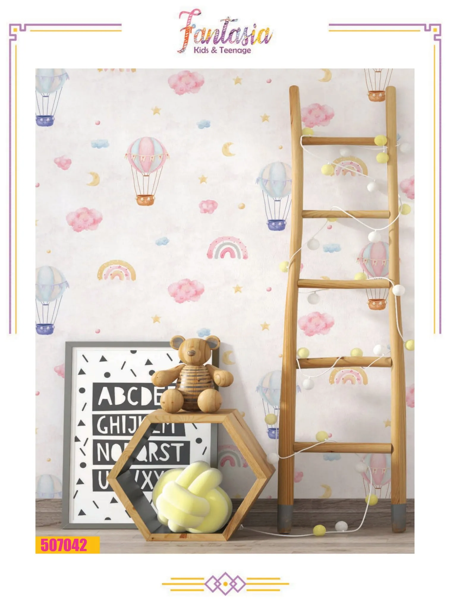 کاغذ دیواری کودک بالن و رنگین کمان فانتزیا 507042