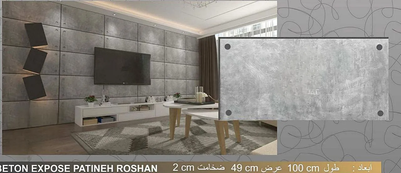 طرحهای متنوع و زیبا: شامل طرحهای چوب طبیعی، بتن، صخره، ترمووال، کاشی اسلیمی و با رنگهای